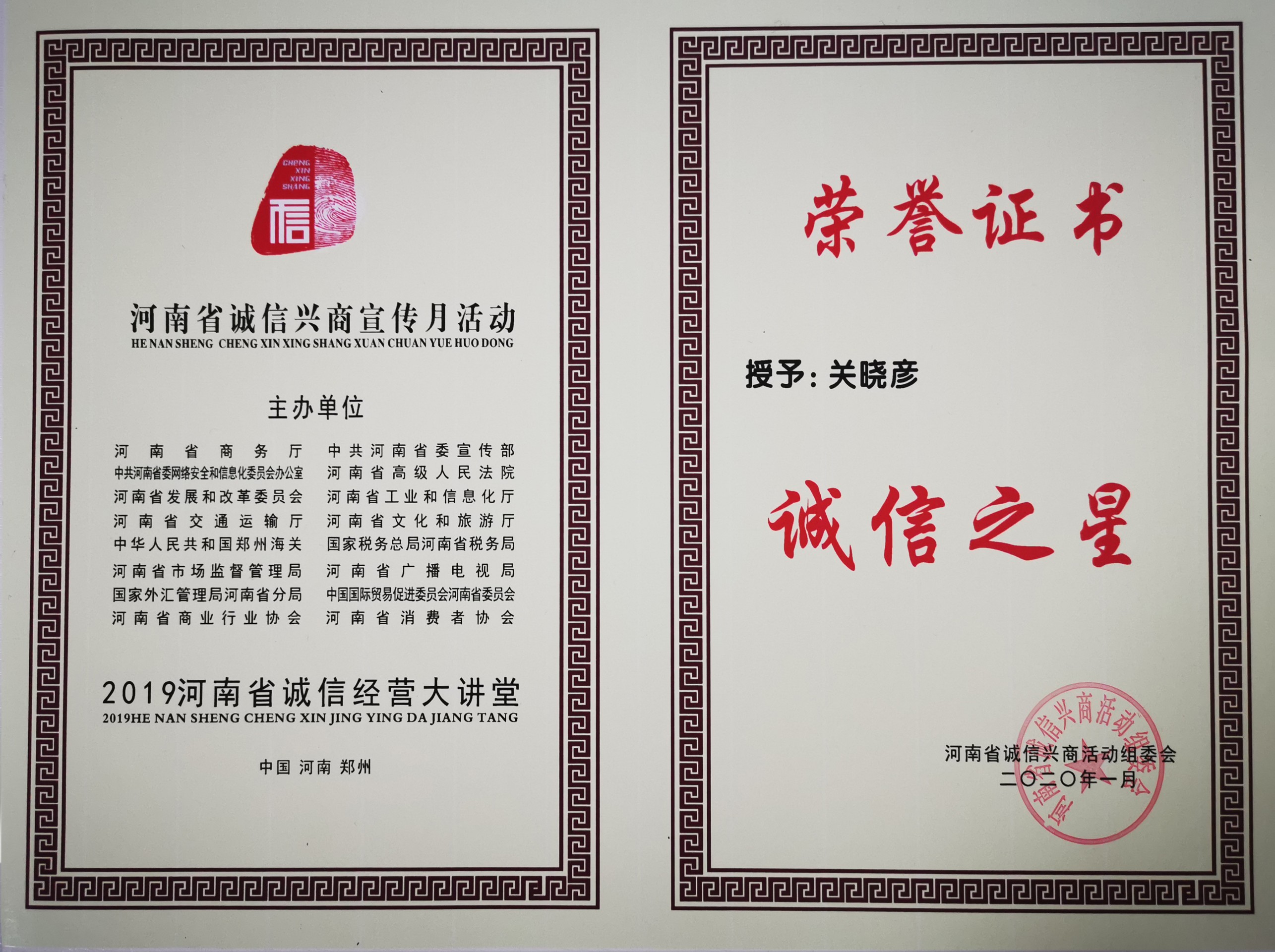 駐馬店市優(yōu)秀企業(yè)家榮譽稱號